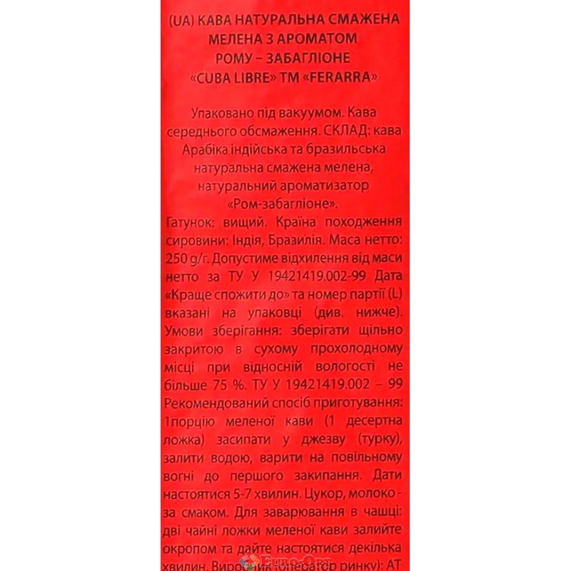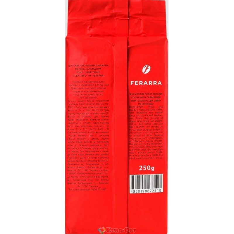 Кофе молотый Ferarra Cuba Libre 250g. — классический бленд средней обжарки с насыщенным ароматом карамели, тёмного шоколада и лёгкой горчинки. Вкус яркий, тело умеренное, послевкусие приятное. Идеален для турки, френч-пресса, кофеварок или американо. Компактная упаковка 250 г — удобно для ежедневного использования или в подарок.