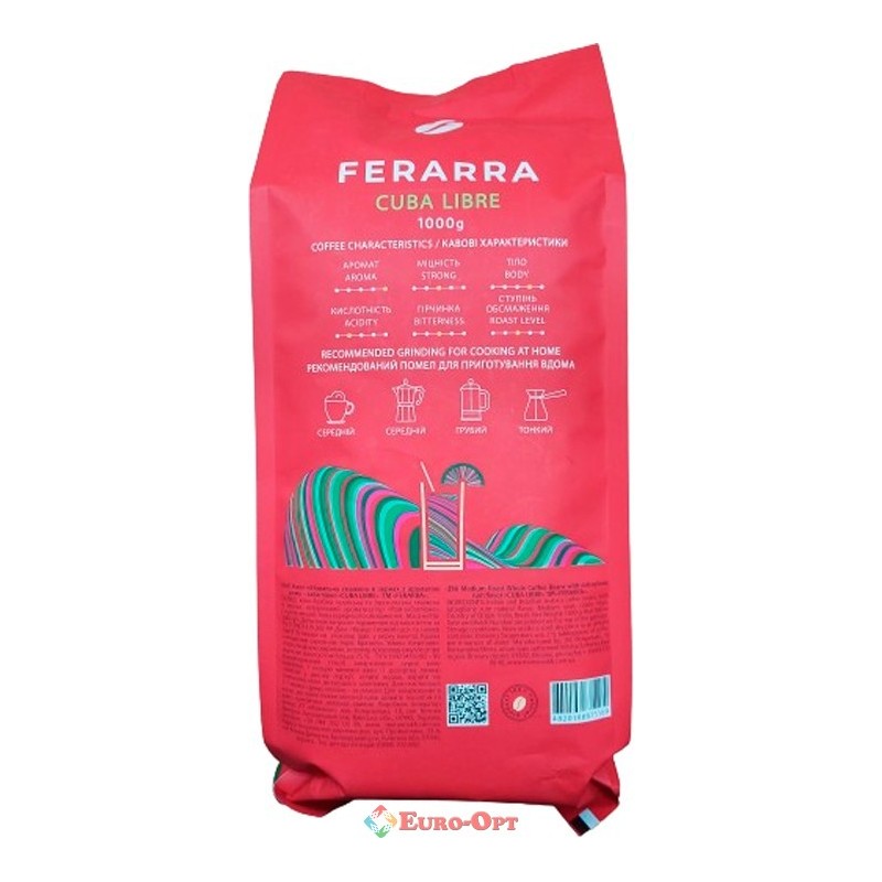 Кофе в зернах Ferarra Cuba Libre 1kg. — это особый кофе с выразительным вкусом и ярким ароматом кубинского рома. Кофе вдохновлен культовым кубинским коктейлем "Куба Либре", а его сочетание бразильской и индийской арабики с пряным ароматом кубинского рома создает непревзойденный вкус.