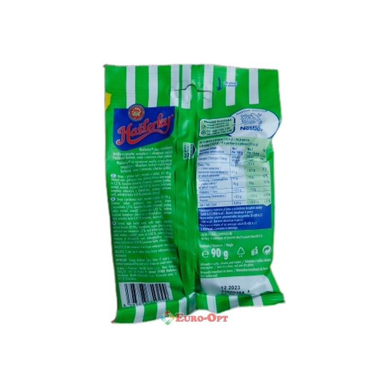 Леденцы Haslerky Zelene Jablko (Хашлярки Зеленое Яблоко) 90g. ― отличный способ избавиться от боли в горле! Известные чешские мятные леденцы Haslerky идут на основе трав-анисового масла и ароматом яблока. Леденцы применяются при различных простудных заболеваниях.