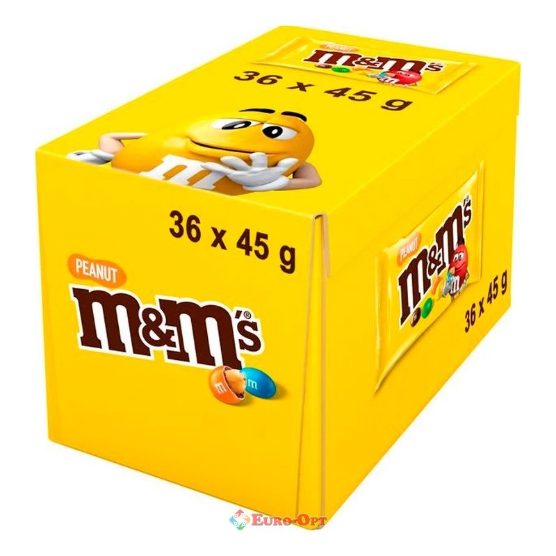 Набор драже M&M's Peanut с Арахисом 36 шт × 45г — классические шоколадные драже с хрустящим арахисом в молочном шоколаде и яркой цветной глазури. Насыщенный ореховый вкус, хрустящая текстура, знакомый вкус детства. Компактные упаковки — идеально для кармана, машины, подарка, вечеринки или просто сладкого настроения.