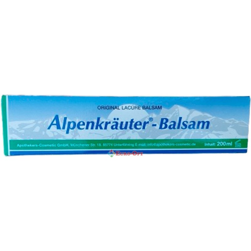 Бальзам Обезболивающий Alpenkrauter Balsam (Альпенкраутер) 200ml. – 100% немецкий продукт, приготовленный по традиционным рецептам из тщательно отобранных альпийских трав. Обладает приятным ароматом, мазь светло-голубого цвета, быстро впитывается кожей. Помогает как вспомогательное средство при плохом кровообращении, снимает боль и скованность в шее, боли в спине.