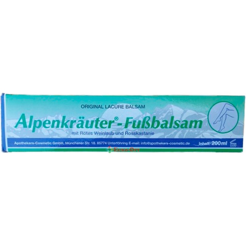 Бальзам для ног Alpenkrauter-Fubalsam (Альпенкраутер Альпийские Травы) 200ml. – содержат питательные вещества, которы были собраны вместе для ухода за уставшими ногами, снятия усталости ног, снятия напряжения, улучшения кровоснабжения, поддержания здорового тонуса вен. Бальзам особенно подходит тем кто вынужден много стоять или сидеть, массажируя ноги этим бальзамом улучшаеться кровоснабжение ног.