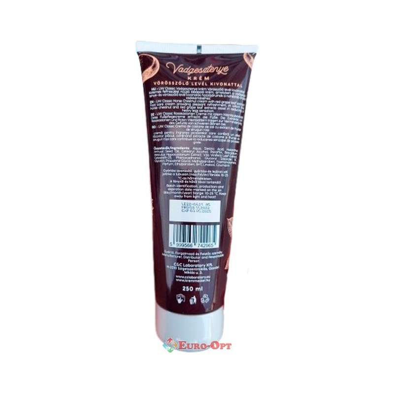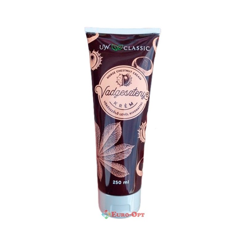 Крем для ног Vadgesztenyes с Экстрактом Каштана – это крем с экстрактом конского каштана, который поможет восстановить ноги, улучшить кровообращение и снять отек. Этот крем также применяется при варикозном расширении вен, флебитах, снятии симптомов синяков, для улучшения кровообращения и заживлении потрескавшейся кожи.