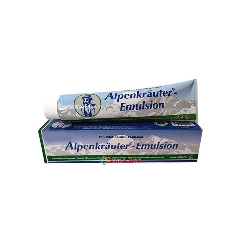 Эмульсия терапевтическая Alpenkräuter Emulsion 200ml. — содержит более 20 экстрактов растений (мята, хвоя кедра, эвкалипт, лаванда, горная сосна, розмарин и др.). Применяется в качестве вспомогательного средства при плохом кровообращении, снимает боль и скованность в шее, а также боль в спине, при восстановлении после переломов, при растяжениях, при травмах колена, плеча и бедра.