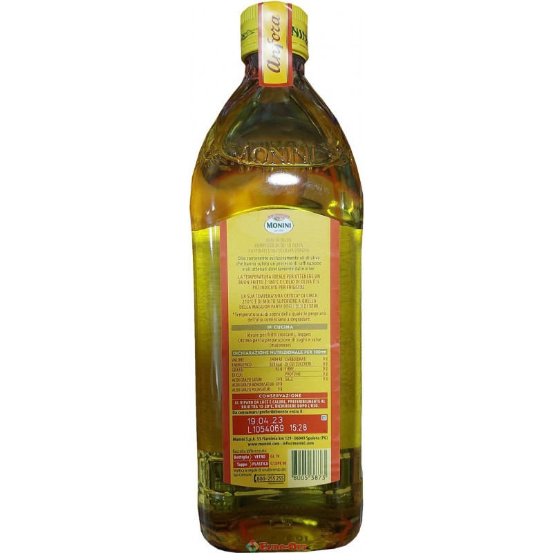 Оливковое Масло Monini Anfora 1000ml — имеет яркий золотистый цвет, нейтральный вкус, низкую кислотность и не горчит под действием высоких температур. Идеально подходит для домашнего приготовления блюд средиземноморской кухни.
