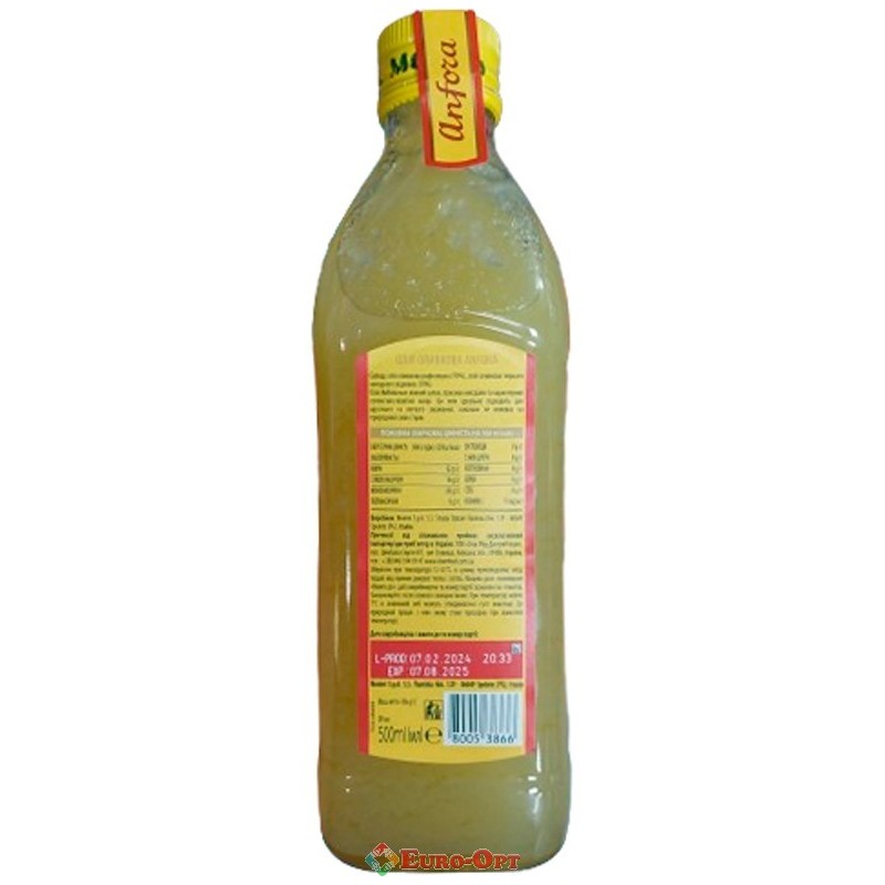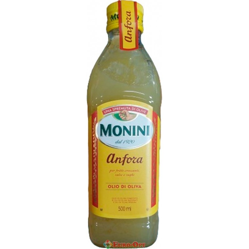 Оливковое масло Monini Anfora 500ml. — имеет яркий золотистый цвет, нейтральный вкус, низкую кислотность и не горчит под действием высоких температур. Идеально подходит для домашнего приготовления блюд средиземноморской кухни.