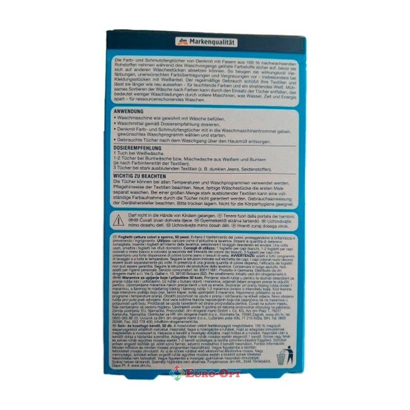 Абсорбирующие Салфетки для Стирки Линяющих Вещ Denkmit Farb und Schmutzfangtücher 50 шт. – принимают во время стирки растворенную краску и грязь все загрязнения в безопасном месте, прежде чем они могут оседать на других предметах белья. Таким образом, они действуют эффективно против обесцвечивания, нежелательных цветных передач. Регулярное использование защищает вашу одежду.