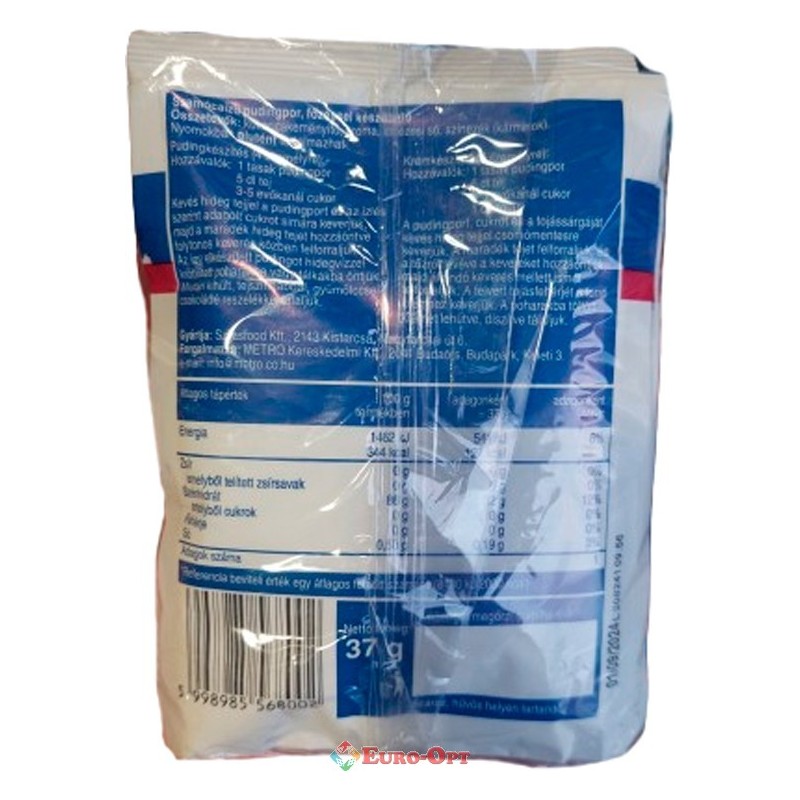 Порошок для ванильного пудинга Aro Vaniliaízu Pudingpor 5x37g. ― это вкусный и нежный десерт со вкусом ванили, любимое лакомство детей! Для его приготовления требуется 1 пакетик пудинга Aro, 0,5 литра молока и 3 столовых ложки сахара, варить на медленном огне до загустения – и все! Производитель Венгрия.