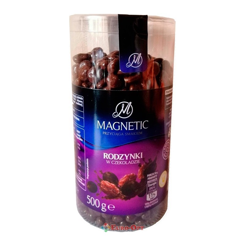 Ізюм в чорному шоколаді Magnetic 400g - Ізюм в шоколаді це по-справжньому вишукане і всіма улюблене лакомство. Кусочки родзинок в шоколадній глазурі порадують не тільки дітей, а й дорослих. Ізюм в шоколаді корисний для роботи мозку, в ньому міститься безліч корисних мінералів і вітамінів, а також він сприяє виробленню серотоніну гормону щастя.