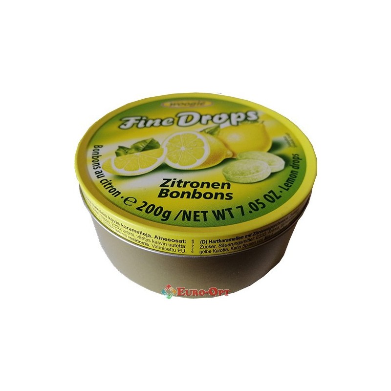 Льодяники з Лимонним Смаком Woogie Fine drops Zitronen 200g — це льодяники з натуральним соком лимона. Кожна цукерка захищена від злипання обсипана пудрою і упаковані в круглу металеву коробку з кришкою. Такі льодяники завжди приємно мати з собою в рюкзаку, і ще приємніше пригостити ними своїх друзів.