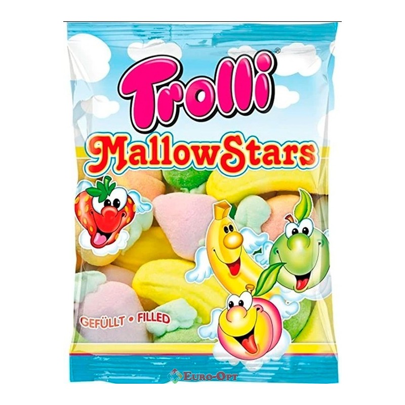 Цукерки Troli Mallow Stars 150g. — яскраві зефірні зірочки з ніжною текстурою та насиченим смаком. Повітряна м’якість, соковита начинка, приємний солодкий аромат. Чудовий десерт для святкового столу, подарунка чи просто до чаю.