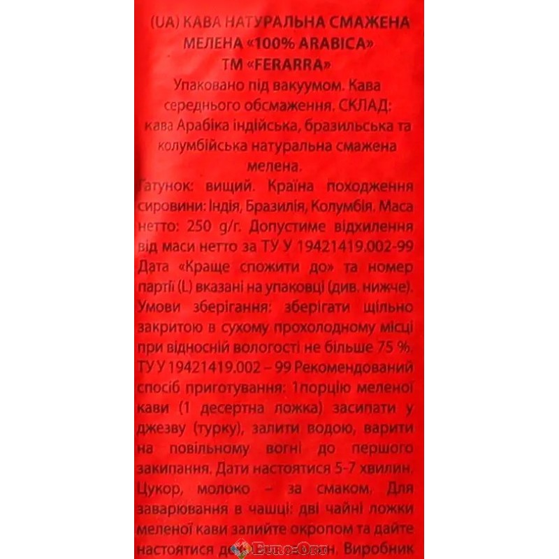 Кава мелена Ferarra Caffe 100% Arabica 250g.