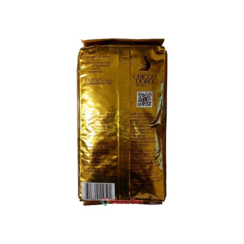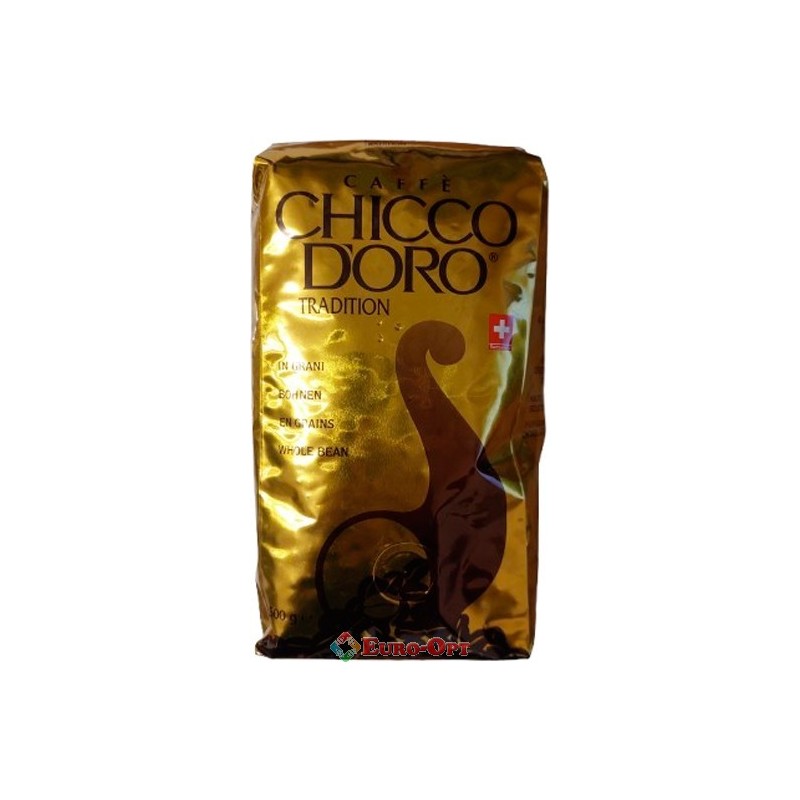 Кава в зернах Chicco D'oro Tradition 500g. — якісна швейцарська кава. У складі 100% арабіка, змішана з декількох сортів. Основа кави Chicco d'oro - зерна вирощені в Центральній частині Америки. Зерна мають середнє обсмажування. Готовий напій легкий з присмаком какао і фруктовим ароматом.