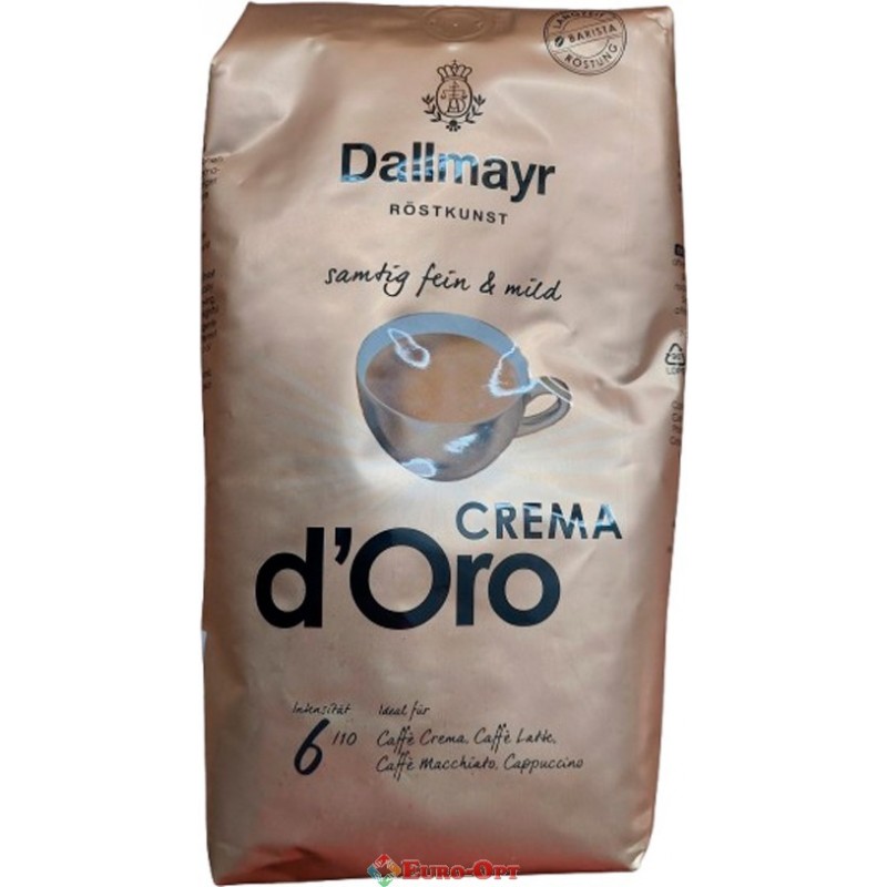Кава в зернах Dallmayr Crema d'Oro (Даллмайер Крема Д`Оро) 1kg. ― ретельно вивірений купаж найблагородніших кавових зерен і м'якого обсмажування гарантують світлу піну і збалансований аромат.