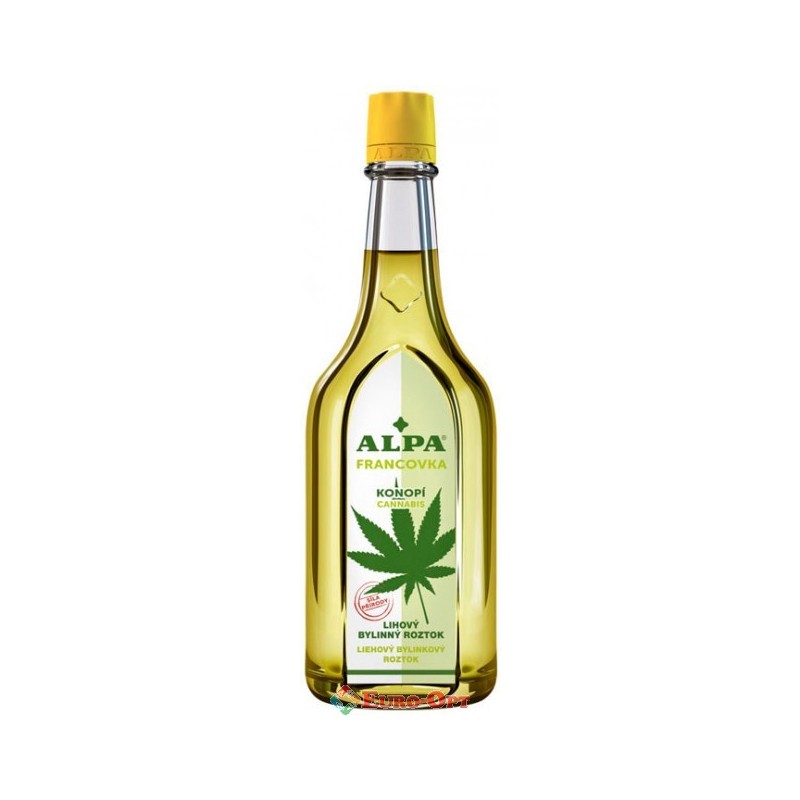 Спиртовий трав'яний розчин Alpa Francovka Konopi (Альпа Францовка Конопляна) 160ml. — знеболююче, надає заспокійливу і розслаблюючу дію. Містить екстракт конопель, який має багатобічний вплив. Продукт має відновлюючу дію і розслабляє спазмовані частини тіла. Знімає втому після фізичного навантаження, викликає розслаблення і освіжає. Позитивно впливає на весь організм.