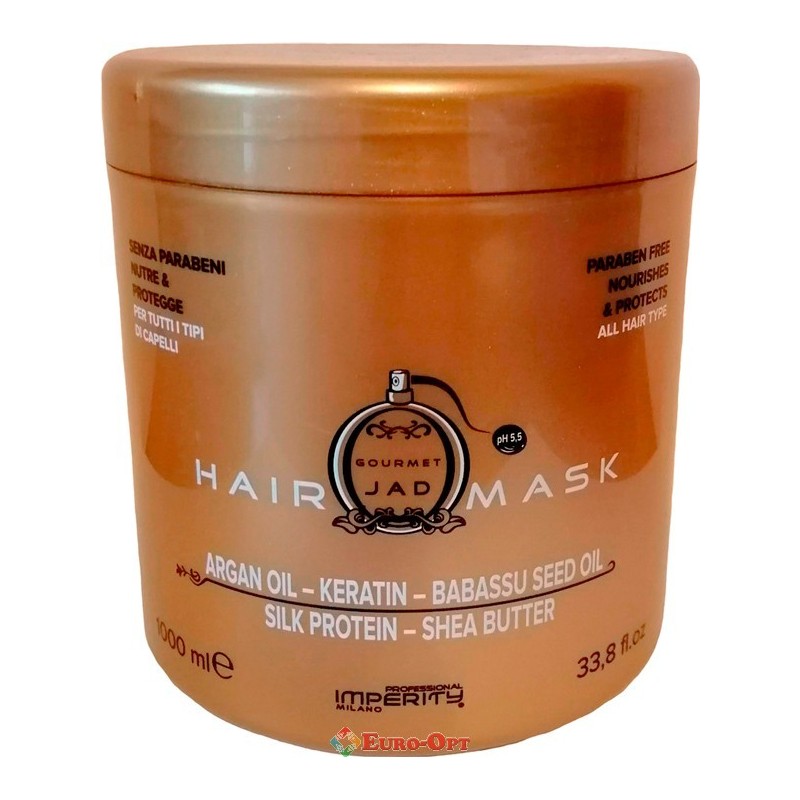Маска для Волосся Imperity Gourmet Jad Hair Mask 1000ml. — насичений корисними компонентами б'юті-продукт для інтенсивного і ефективного догляду за будь-яким типом волосся. Маска сприяє зміцненню стрижнів локонів, відновлення їх структури, розгладженню. При регулярному застосуванні цього засобу волосся придбають дивовижний глянсовий блиск і м'якість.