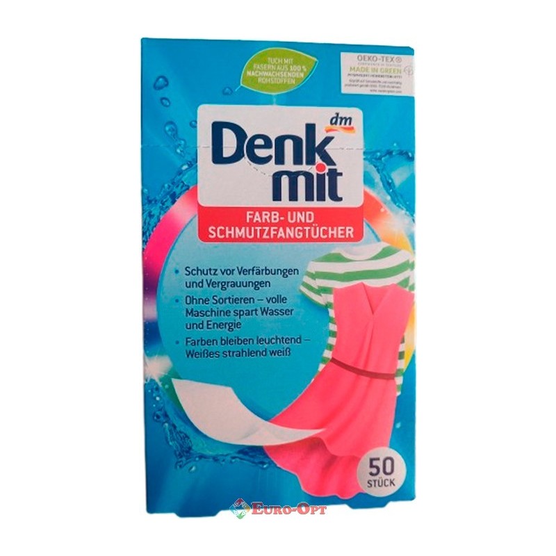 Абсорбуючі Серветки для Прання Линяючих Речей Denkmit Farb und Schmutzfangtücher 50 шт. – приймають під час прання розчинену фарбу та бруд усі забруднення в безпечному місці, перш ніж вони можуть осідати на інших предметах білизни. Таким чином, вони діють ефективно проти знебарвлення, небажаних кольорових передач. Регулярне використання захищає ваш одяг.
