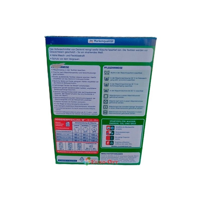 Пральний порошок Denkmit Vollwaschmittel (20 прань) 1.35kg. ― пральний порошок для будь-якої білизни. Сильнодіючий концентрований миючий засіб для сильно забрудненої білизни, що дозволяє його економно використовувати. Глибоко проникаючи в волокна тканини він максимально відпирає бруд і застарілі плями. Підходить як для ручного, так і для машинного прання.
