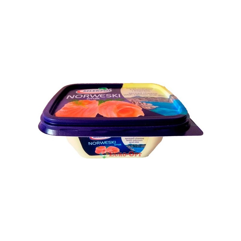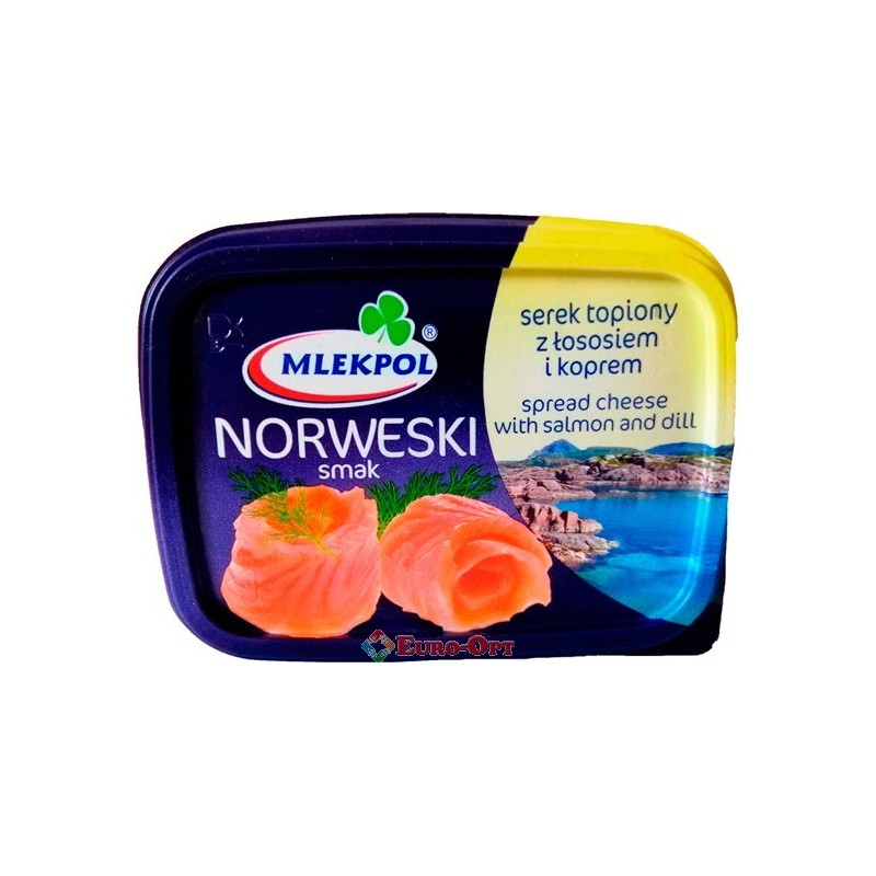 Сир плавлений Mlekpol norweski smak 150g   М'який плавлений сир Mlekpol з лососем і кропом має дуже ніжний смак! Чи стане прекрасним доповненням до бутерброду вранці.