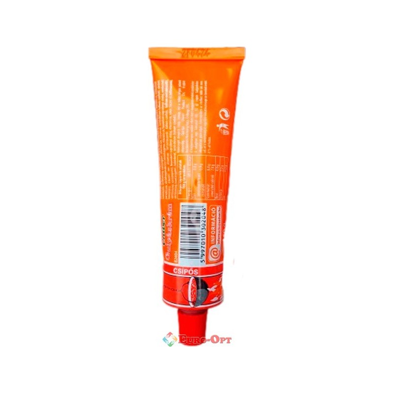 Соус гострий для бограча та гуляшу Univer Gulyaskrem Csípős 160g. — пікантна, дуже ароматна, червонувато-коричневого кольору. Соус посилює аромат і надає пікантного смаку гуляшу або підливу. Особливість пасти Gulyáskrém полягає у поєднанні гострого перцю-паприки (з мінімальним вмістом капсаїцину), цибулі, томатів, кмину та лаврового листа.