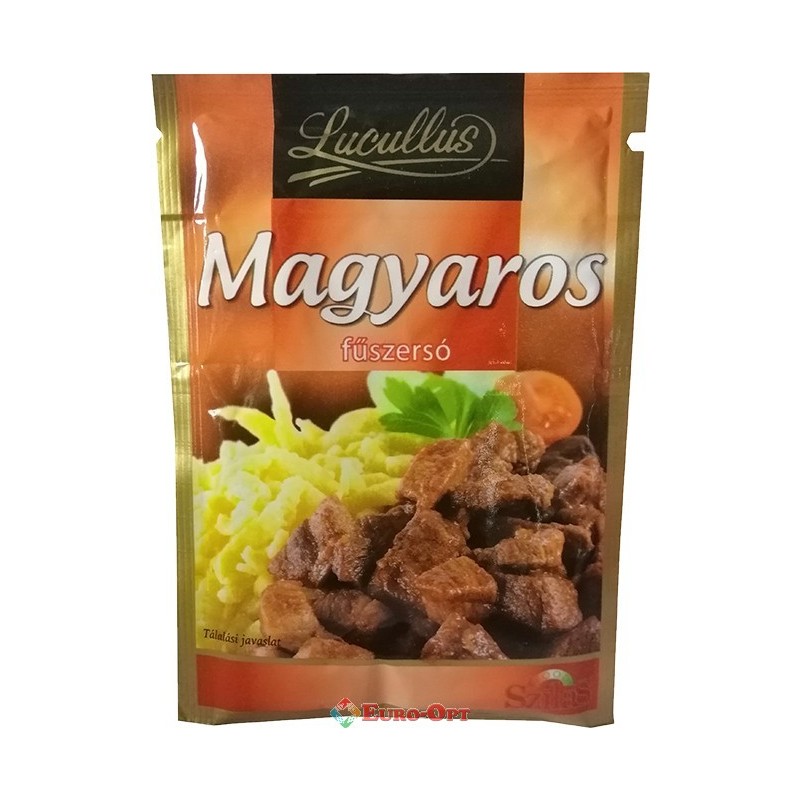 Приправа Lucullus Magyaros 40g — Підходить для ароматизації угорських страв - супу-гуляшу, смаженої, фаршированої та секлерської капусти, жаркого. Вмісту саші вистачає для ароматизації 1 кг готового до вживання м'яса.