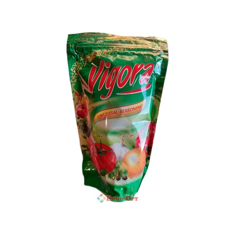 Приправа Універсальна Vigora Universal Seasoning 200g. — має широку популярність у Європі, завдяки вдало підібраним компонентам, які підкреслюють неповторний натуральний смак і запах страв, що готуються. Додавати невелику кількість, приправа концентрована і немає необхідності додавати багато. Підходить для приготування: супів, соусів, м'ясних, овочевих та рибних страв так.