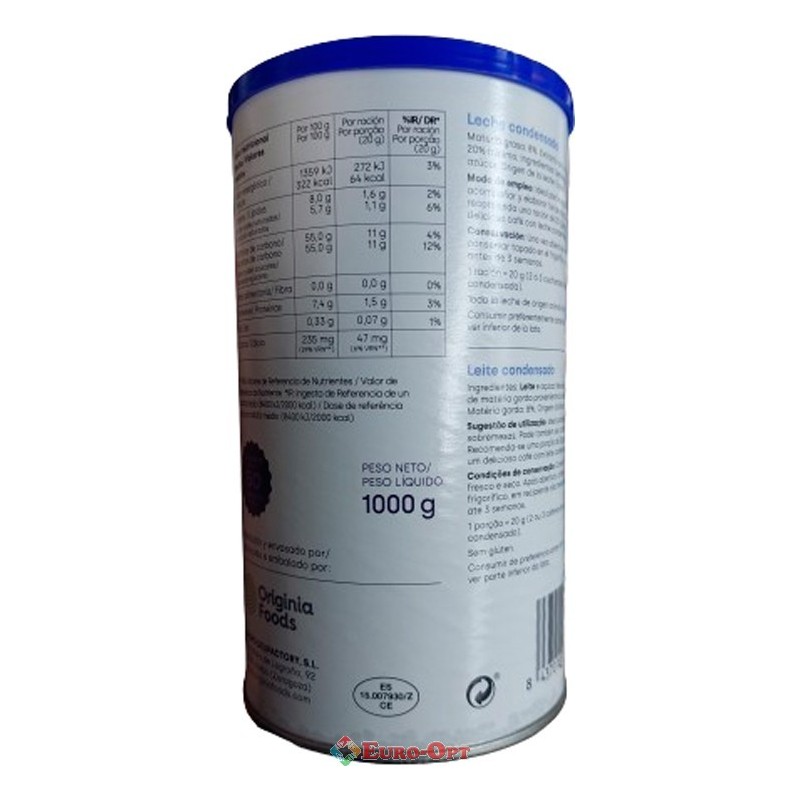 Згущене молоко Benestare Leche Condensada Original 1kg. ― іспанське натуральне згущене молоко виготовляється з дуже свіжого коров'ячого молока. Згущене молоко виготовлене з відбірного цільного молока, згущене при низькій температурі для збереження поживних властивостей молока. Продукт призначений для безпосереднього вживання в їжу або додається до смаку в какао, кава, чай, десерти.