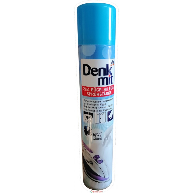 Спрей для Прасування Denkmit 2in1 Bügelhilfe & Sprühstärke 500ml — полегшує процес прасування, робить білизну більш еластичною і надає їй необхідну форму. Натуральний крохмаль робить манжети, коміри та ґудзикові планки надійно стійкими та акуратними. Завдяки спеціальній формулі цей спрей запобігає прилипанню праски до білизни.